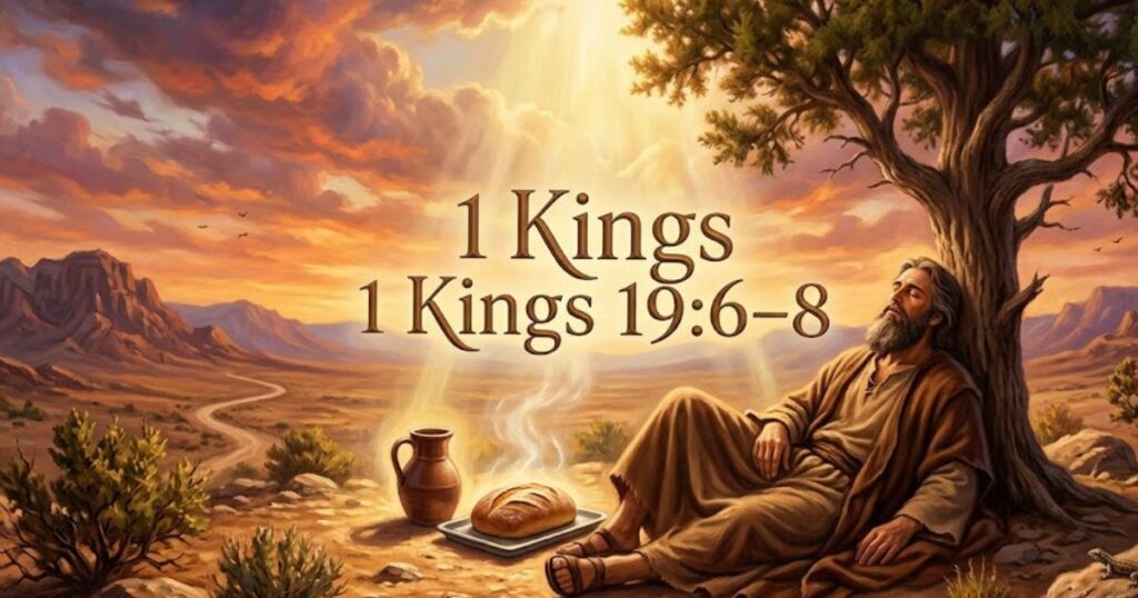 1 Kings 19:6–8 tells the touching story of God feeding Elijah through an angel. Elijah was exhausted, depressed, and ready to give up entirely. God’s response wasn’t rebuke — it was bread and water. This verse shows that sometimes God’s most profound ministry to you comes through simple physical nourishment and rest.